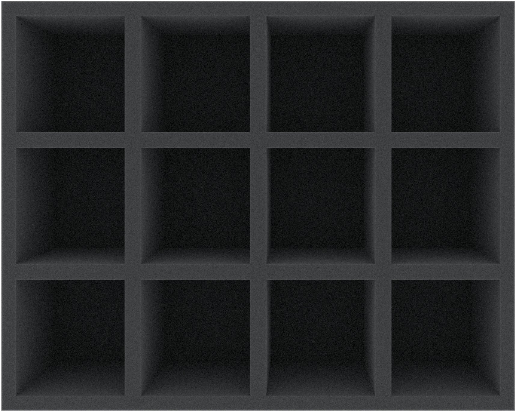 Esta bandeja de espuma Full-Size está dividida en 12 compartimentos. La esterilla es ideal para el almacenamiento seguro y claro de miniaturas más grandes y para material de juego.