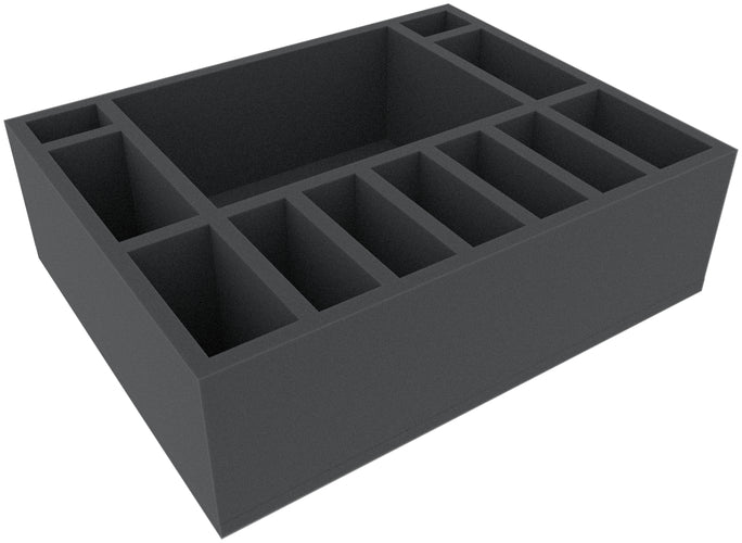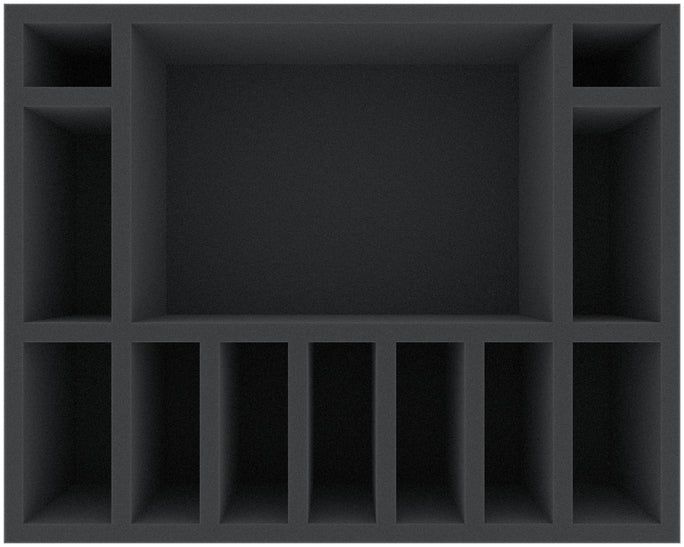 Esta bandeja de espuma de 105 mm de altura está dividida en 12 compartimentos. Es especialmente adecuada para guardar de forma segura miniaturas de juegos de mesa y de tablero, así como otros modelos frágiles y piezas pequeñas.