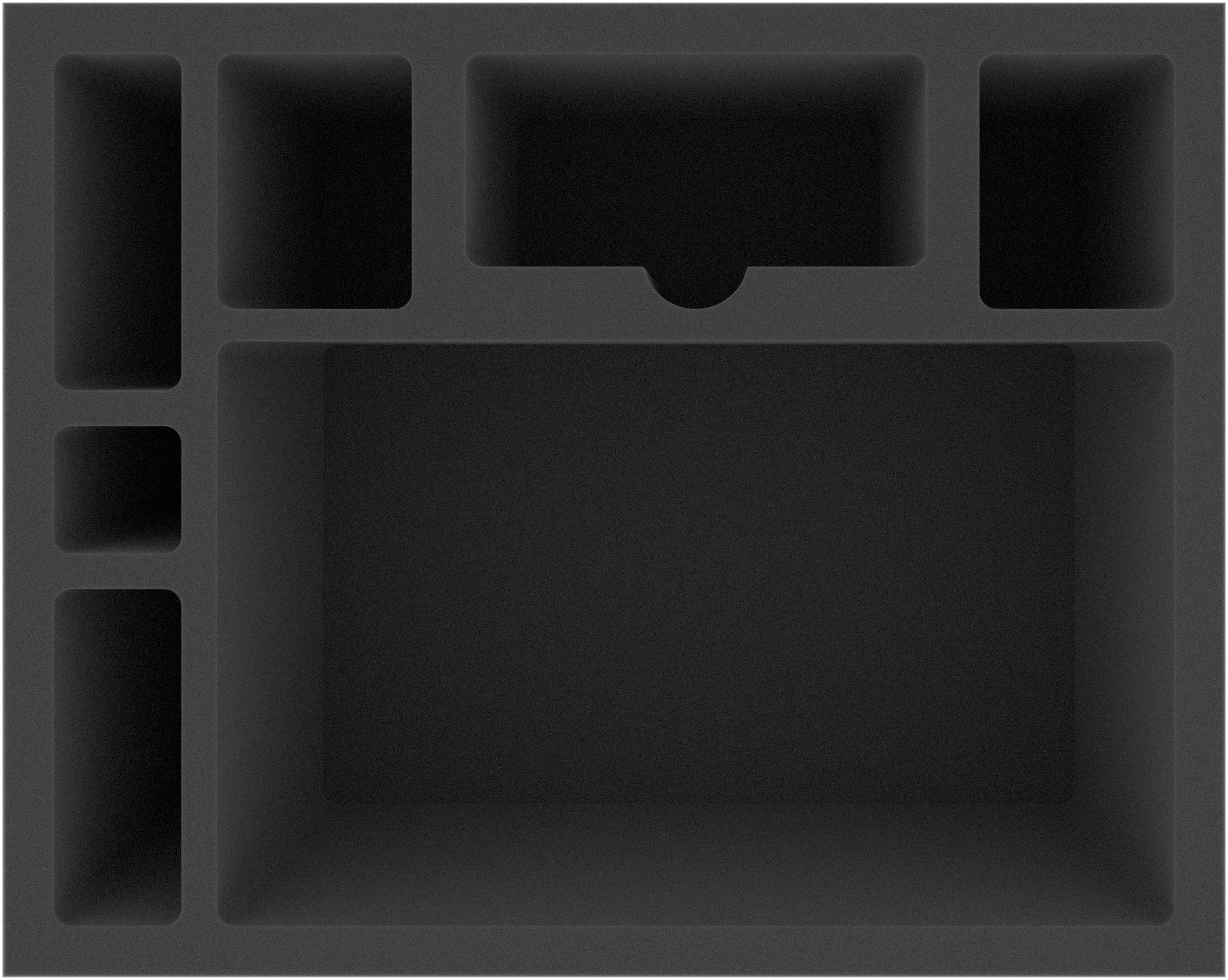 Esta bandeja de espuma de 145 mm de altura está dividida en 7 compartimentos. Es especialmente adecuada para guardar de forma segura miniaturas de juegos de mesa y de tablero, así como otros modelos frágiles y piezas pequeñas.