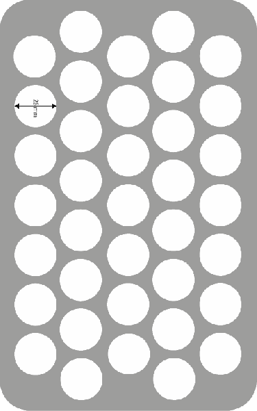 - Cada uno de los 37 compartimentos tiene un diámetro de 28 mm y una profundidad de 60 mm.