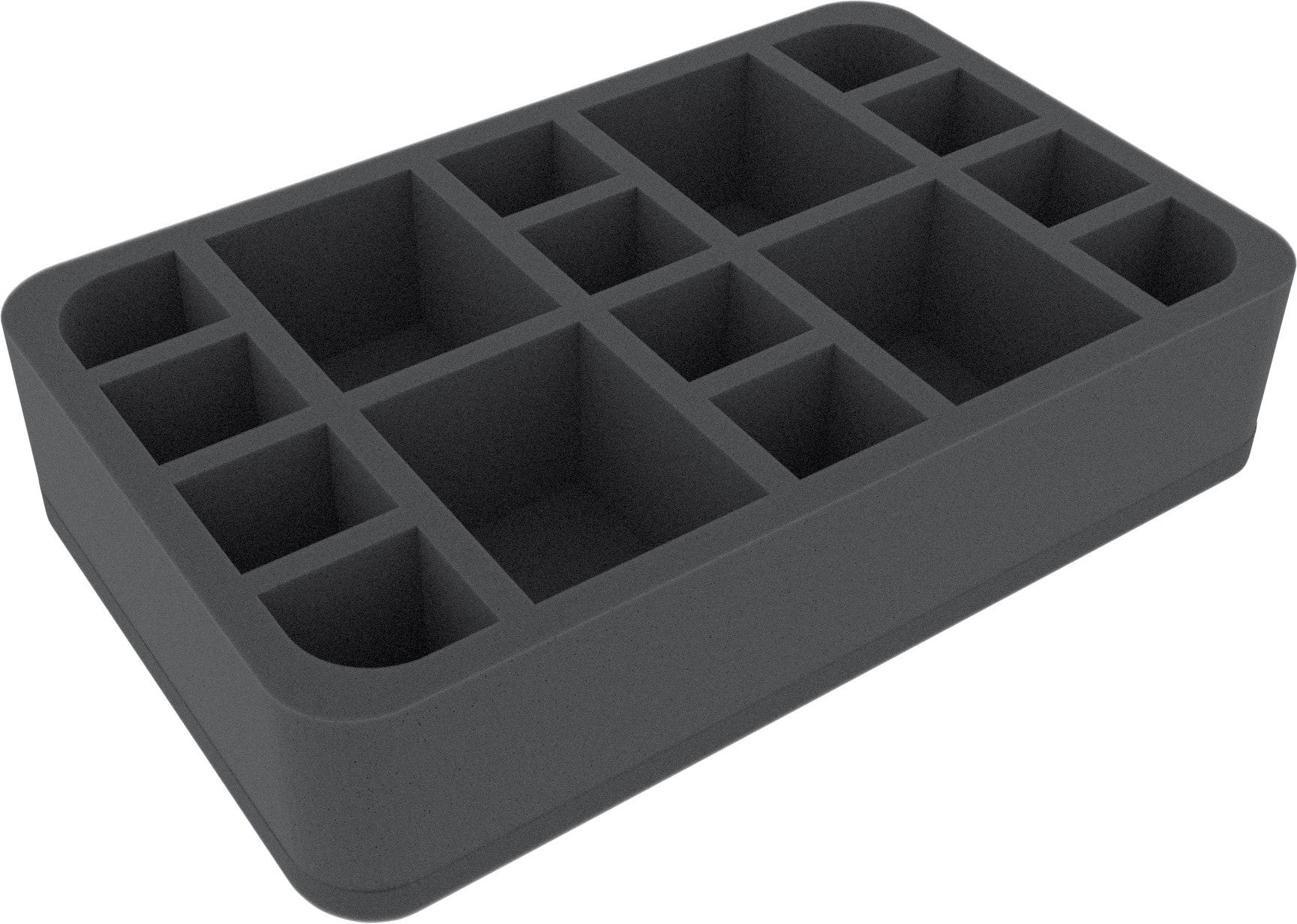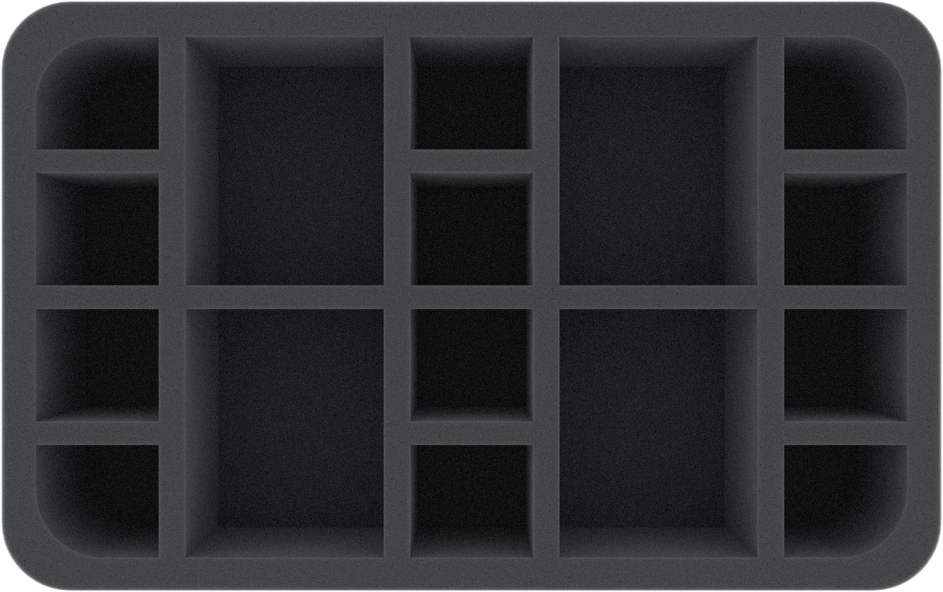 Esta bandeja de espuma tiene 16 compartimentos para el almacenamiento seguro de miniaturas de juegos de mesa. Por supuesto, también es adecuado para accesorios, como dados y fichas.