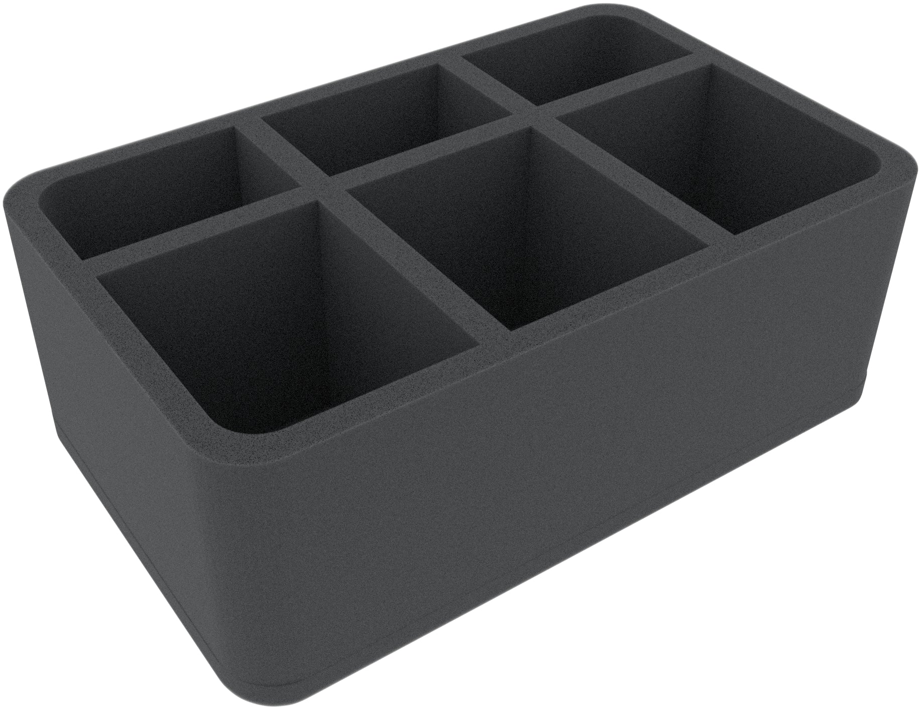 Esta bandeja de espuma de 100 mm de alto está dividida en 6 compartimentos. Es particularmente adecuada para el almacenamiento seguro de miniaturas de mesa y juegos de mesa, así como otros modelos frágiles y piezas pequeñas.